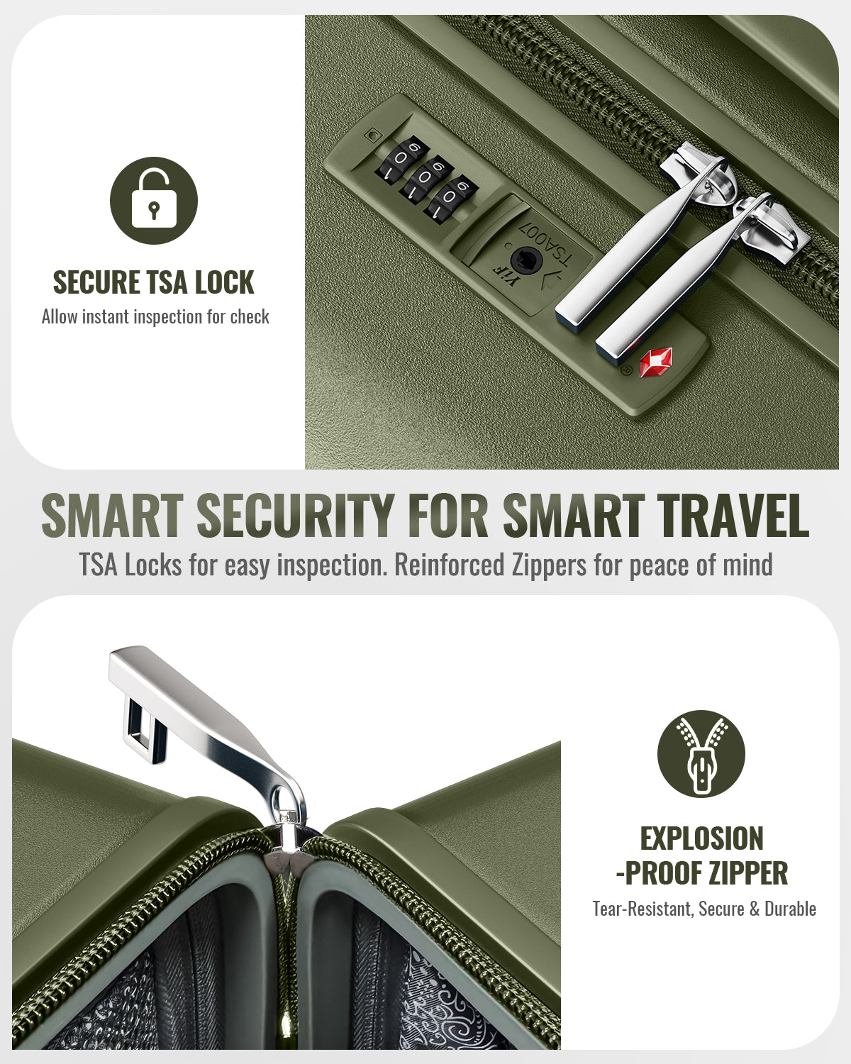 - TSA Lock & YKK Zipper: Luggage set with TSA lock, which can be opened by TSA staff if necessary. Travel luggage sets with reinforced and upgraded YKK zippers to prevent zipper splitting effectively